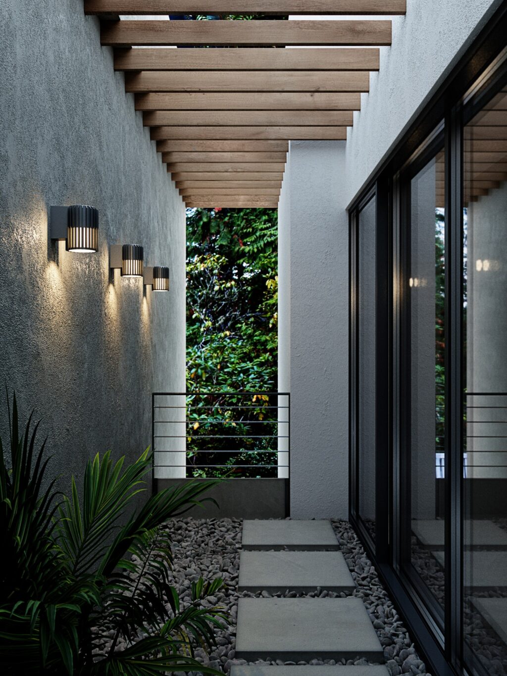 Skulpturales Design und moderner Minimalismus –. Eine kompakte und vielseitige Deckenleuchte, die einen schönen Licht- und Schatteneffekt sowie ein einladendes Ambiente in Ihrem Außenbereich schafft.
