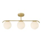 Wenn der Platz für eine Pendelleuchte zu knapp ist, stellt die Grant Deckenleuchte eine sehr gute Alternative dar. Die drei großen Kuppeln aus opalweißem Glas sorgen für eine schöne allgemeine Raumbeleuchtung, gleichzeitig nimmt diese Leuchte nicht unnötig Platz ein, weshalb Grant beispielsweise gut im Eingangsbereich oder im Flur angebracht werden kann. Darüber hinaus greift die Grant Pendelleuchte mit ihrem Messing und dem weißen Opalglas einen wichtigen aktuellen Designtrend auf.